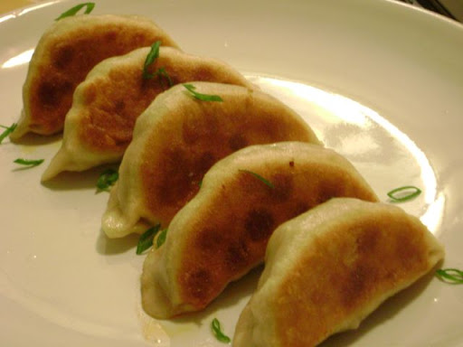 COOKING THE DUMPLINGS: In a hot saute pan coated well with oil, place pot stickers flat side down and cook until the bottom is browned. Have pan cover ready and add 1 cup of chicken stock, cover immediately. Be careful, the liquid will splatter! The stock will steam the pot stickers. Check them in 5 minutes as more stock may be needed. The trick here is that once the dumplings are firm and fully cooked the stock will evaporate and the bottoms will crisp-up again.