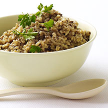 Add broth, barley and salt; bring to a boil. Partially cover pan and reduce heat to low; simmer until barley is tender, stirring occasionally, about 60 to 75 minutes. Yields about 1 cup per serving.