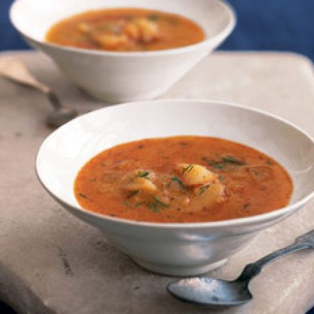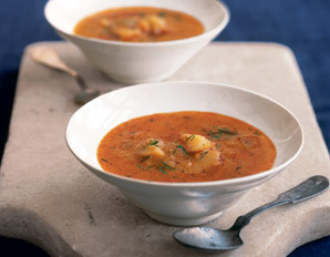 3. STIR in broth and then add potatoes back to pot. Stir and break up potatoes into broth to reach a slightly chunky consistency. (The idea is to create a textured soup, not a baby-food-smooth one.)