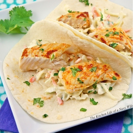 4. Top the warmed tortillas with coleslaw, fish, shredded cheese and remaining cilantro.