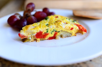 Slide the frittata out of the skillet and onto a cutting board. With a long serrated knife, slice it into wedges and serve warm with fresh fruit.