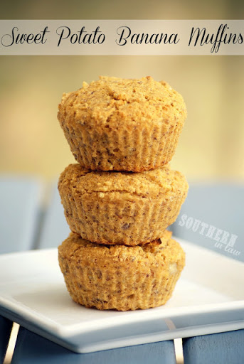 In a separate bowl, mash banana and add in sweet potato puree, applesauce, vanilla and honey/sweetener (if using - see tips).