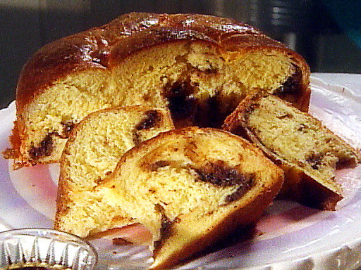 piece into a rectangle 8 by 14 inches and 1/4-inch thick. Let the dough rest while you roll the other out. Spread each with 1/2 of the filling, then roll them up jellyroll style and pinch the seams to seal them. Flatten the dough slightly with a rolling pin, then twist the dough 6 to 8 times. Allow the dough to rest a few minutes. Make spirals with the dough and place them in 2 greased 8-inch cake pans. (Alternatively, lay the dough straight out in 2 greased tube pans.) Cover each pan with a damp cloth, and let rise in a warm place until almost doubled in volume, about 30 to 60 minutes.