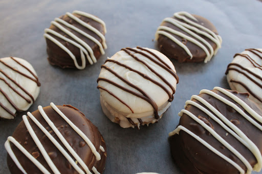 4. In a pot, melt your almond bark on low heat, making sure not to burn it. One cracker sandwich at a time, gently place into the chocolate and coat. Using a fork, pick up the sandwich from the bottom and gently tap the excess almond bark off. Slide onto the wax paper.