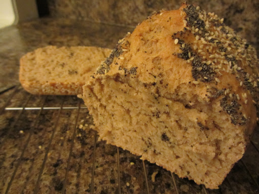 Pour the dough into the loaf pan, then sprinkle lightly with poppy seeds or sesame seeds, or both!