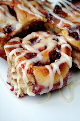 Bake the rolls for about 25 minutes, until they are golden and the berries are bubbling.