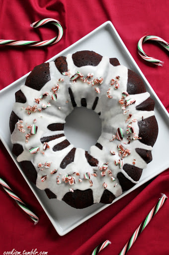 Using a mortar and pestle, gently crush candy canes and sprinkle over the bundt cake. Now your amazing Christmas bundt is ready!