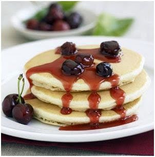 Serve the pancakes hot, topped with a spoonful of the cherry syrup. Pass the remaining syrup at the table. Makes twelve 6-inch pancakes; serves 4.