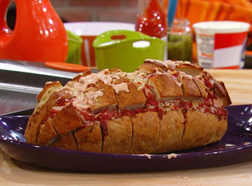 Arrange loaf on a baking sheet and carefully loosen the cubes to form small crevices between them. In a large mixing bowl, combine the corned beef, sauerkraut and shredded Swiss then stuff mixture in-between the bread cubes, making sure to distribute everything evenly. Transfer to oven and bake until cheese is bubbly, about 10- 12 minutes.