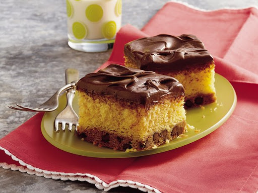 Heat oven to 350°F (325°F for dark or nonstick pan). Generously grease and lightly flour bottom only of 13x9-inch pan, or spray with baking spray with flour.
