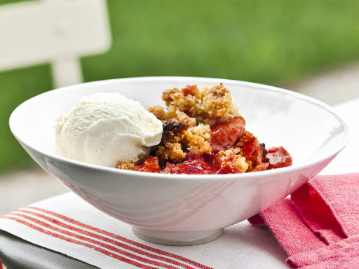 For the fruit, toss the rhubarb, strawberries, 3/4 cup of the granulated sugar and the orange zest together in a large bowl. In a measuring cup, dissolve the cornstarch in the orange juice and then mix it into the fruit. Pour the mixture into an 8-by-11-inch baking dish and place it on a sheet pan lined with parchment paper.