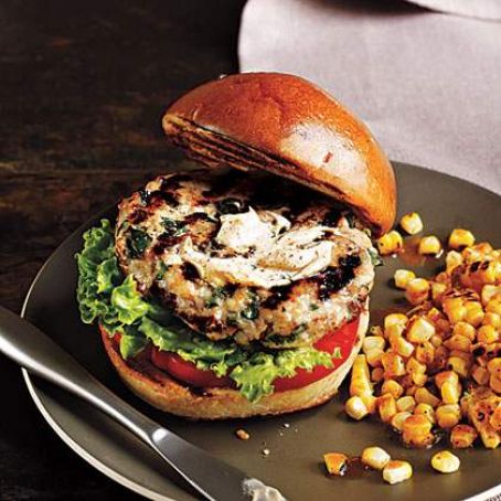 Preheat grill to medium heat. Place all ingredients for the burgers in a large bowl. Use hands to blend together well.