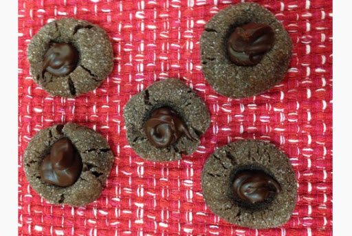 Place balls, 1 inch (2.5 cm) apart, on 1 or 2 large, parchment-lined baking sheets. In batches, bake in centre of preheated 350F (180C) oven 5 minutes. Remove sheet from oven. With small end of melon baller or bottom of 1/2 tsp (2 mL) measuring spoon, make an indentation in centre of each cookie. Bake 4 minutes, until cookies are just set but still look moist (do not overbake). Cool 30 minutes on sheets on wire racks.