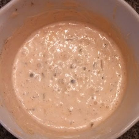 Combine the mayonnaise, ketchup, dijon mustard, lemon zest, lemon juice, tabasco sauce, relish.