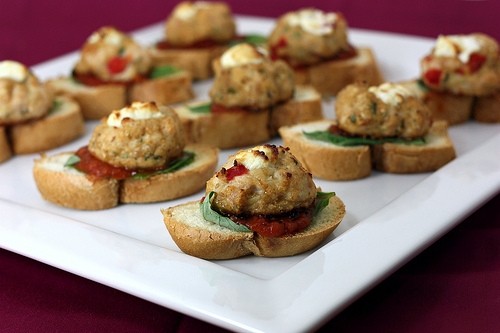 Goat Cheese-Stuffed Chicken Meatball Crostini