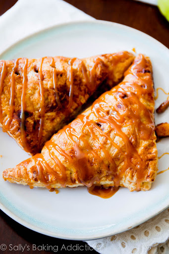Remove from the oven and drizzle each turnover with caramel sauce immediately before serving. Turnovers taste best on the same day, though you can store them at room temperature in an airtight container for up to 3 days. Unglazed, baked turnovers may be frozen up to 2 months and thawed overnight in the refrigerator, then warmed up in the oven or microwave.