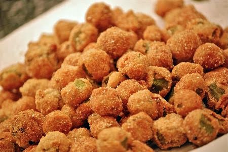 --> The sugar in the cornmeal coating caramelizes as the okra cooks, creating a crisp, golden crust.