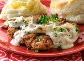 In shallow dish, place 1/2 cup Bisquick mix. Into small bowl, pour buttermilk. In another shallow dish, place bread crumbs. Coat beef steaks with Bisquick mix. Dip each coated steak into buttermilk, then coat with bread crumbs.