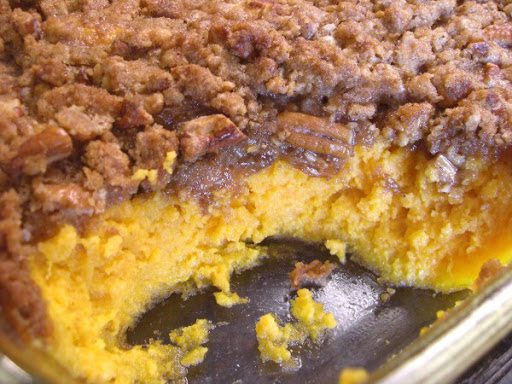In a large bowl, beat together all the filling ingredients with an electric mixer. Pour into a greased, 9×13-baking dish. In a separate bowl, mix all the topping ingredients together with a fork to form a crumbled mixture. Spread crumb mixture on top of casserole and bake in the middle of the oven for 35-40 minutes. Remove from oven and allow casserole to cool for at least 10-20 minutes before serving.