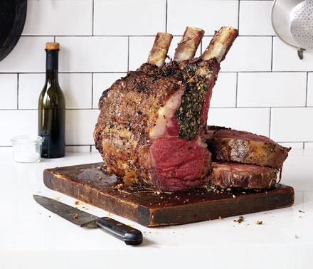 - 1 5-bone standing beef rib-eye roast (1013 pounds), chine bone removed, fat trimmed to 1/4" thickness