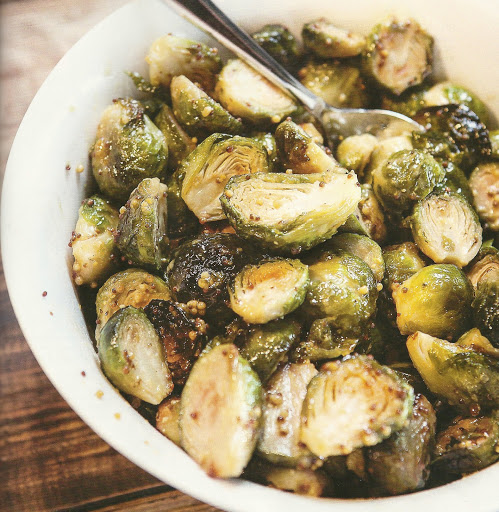 2. Toss Brussels sprouts with honey, mustard, and bacon fat. Season with salt, pepper, and olive oil, and roast in kk1 400-deree oven. They will begin to caramelize after about t10 minutes. At that point add the chopped almonds and roast for another 5 minutes.