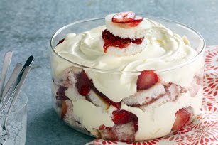 LAYER half each of the cake pieces, berries (with juices) and pudding mixture in large glass bowl; repeat layers. Top with reserved cake round. Refrigerate 4 hours.