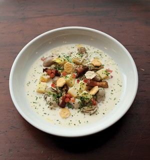 2. Add clam juice and bring to a boil. Add heavy cream and bring to a boil again.