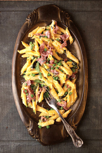Garganelli with Peas and Prosciutto