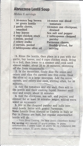 Note: Lentils from Abruzzi or Umbria in Italy or Puy in France are best, but regular supermarket lentils will do