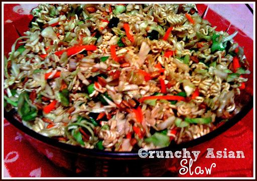 • 2 pkgs. Ramen chicken flavored noodles (use the seasoning packets for the dressing)