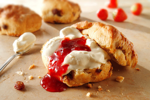 Cheese: Use the method above, but omit sugar and add 2/3 C grated cheddar cheese and 1/2 tsp. dried oregano to the dry mixture before adding milk. Top each scone with a little additional cheese before baking.