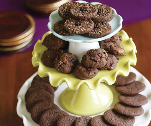 In a food processor, combine the flour, cocoa, sugar, salt, and baking soda. Pulse several times to mix thoroughly. Cut the butter into about 12 chunks and add them to the bowl. Pulse several times. Combine the milk and vanilla in a small cup. With the processor running, add the milk mixture and continue to process until the dough clumps around the blade or the sides of the bowl. Transfer the dough to a large bowl or cutting board and knead with your hands a few times to make sure the dough is evenly blended. Portion the dough into equal thirds. If you have a scale, weigh each third; each should weigh about 12 oz. Make the recipes for Bittersweet Mocha Cookies.