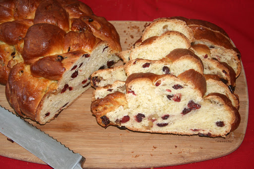 If you want to make a braid bread, set bread machine on dough. Take it out, add the raisins, cranberries, and nuts, and shape into loaf. Set on baking sheet sprayed with Pam, cover and let rise in a warm place until double in size and bake at 375 for 30 to 40 minutes, or until nice and browned on top. After it has cooled, you can add a glaze made with powdered sugar and orange juice.