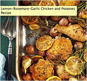 2. Place a roasting pan on stove top over 2 burners. Add 3 Tbsp. olive oil, and heat over medium-high heat. Sprinkle chicken with desired amount of salt and pepper; place, skin sides down, in pan. Add potatoes. Cook 9 to 10 minutes or until chicken is browned. Turn chicken, and pour lemon mixture over chicken.