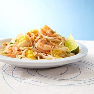 3. Add the noodles, bean sprouts, scallion greens, vinegar, fish sauce, brown sugar and crushed red pepper; toss until heated through, 1 to 2 minutes. If desired, sprinkle with peanuts and serve with lime wedges.