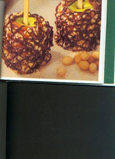 Dip apples in caramel cover completely. Scrape excess caramel from bottom on apple onto side of pan & let excess drip back into pan. Immediately roll apple in nuts, pressing nuts in to stick.