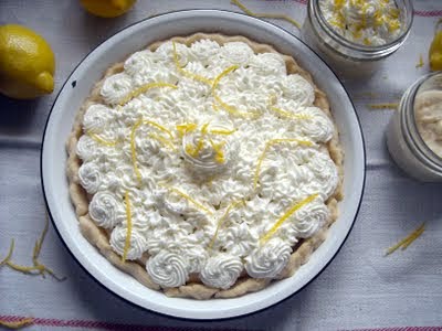Remove the filling from the refrigerator and fold the 1 ¼ cup of crème fraiche and 1 teaspoon of almond extract into the lemon pie filling. Gently fold until the crème fraiche is completely mixed in to the filling. Pour the filling into the pie crust and chill for about 2 hours.