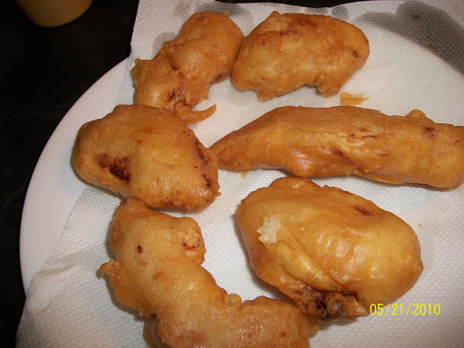Heat oil in a deep-fryer or Dutch oven to 375°F. Carefully dip the battered chicken pieces in hot oil and fry until golden brown (about 3 to 4 minutes).