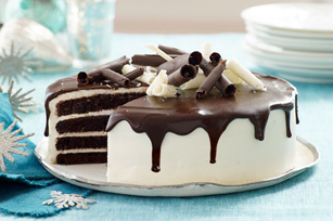 PREPARE cake batter and bake as directed on package for 2 (9-inch) round cake layers, blending dry pudding mix and milk into batter before pouring into prepared pans. (Batter will be thick.) Cool cakes 10 min.; remove from pans to wire racks. Cool completely.