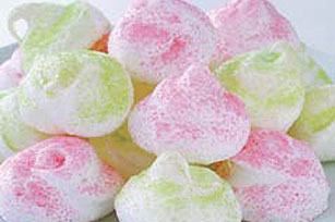 Drop tablespoonful’s of the egg white mixture onto baking sheet covered with parchment paper. Sprinkle each meringue lightly with dry gelatin powders.