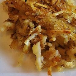 The next morning, heat butter in a large skillet or frying pan. Shred potatoes and add to pan. Season with salt and pepper. Cook until golden brown on bottom, flip and brown on other side.