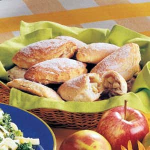 I uses refrigerated biscuits to assemble these turnovers in a jiffy. They also have a easy filling made with chopped apples and applesauce which tastes delicious. Sprinkle with cinnamon and sugar, these golden treats get rave reviews!—Robin Stevens, Cadiz, Kentucky