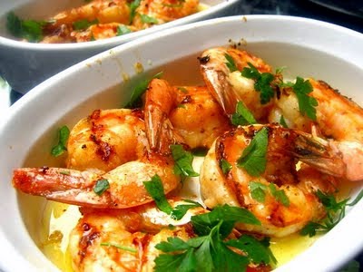 In flat serving dishes, serve the shrimp and spoon some of the garlic oil on top, then some of the reserved garlic slices. Garnish with fresh parsley and serve!