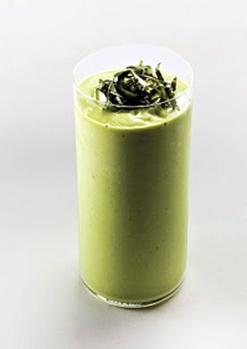 Scoop the flesh from the avocado into a blender. Add milk, lime juice, sugar, and chopped basil; puree Add 1 cup ice; puree until smooth.