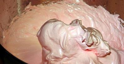 Place the above ingredients in a large GLASS OR METAL mixing bowl (OF A STAND MIXER). Turn the mixer on high just as you add ½ cup of boiling water. Whip on high for five minutes