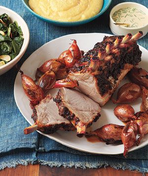 Roast until the internal temperature of the pork registers 145° F*, 85 to 95 minutes. Transfer the shallots to a platter.