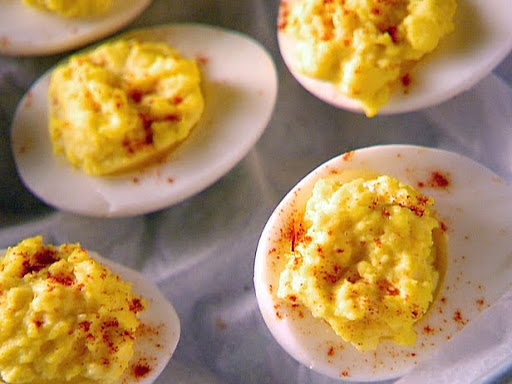Evenly disperse heaping teaspoons of the yolk mixture into the egg whites. Sprinkle with paprika and serve.