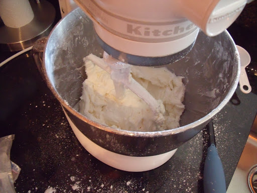 ◦In the bowl of an electric mixer fitted with the paddle attachment, combine butter, 4 cups sugar, milk, and vanilla. Beat on medium speed until smooth and creamy, 3 to 5 minutes.