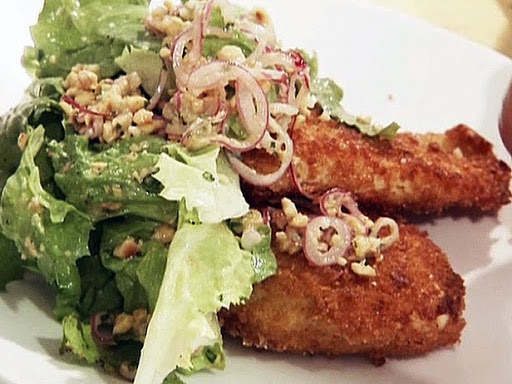 Chicken Milanese with Escarole Salad and Pickled Red Onions