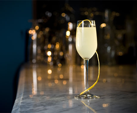 In cocktail shaker, combine gin, lemon juice, and liqueur. Add ice and shake vigorously for 20 seconds. Strain into chilled Champagne flute and top with sparkling wine.